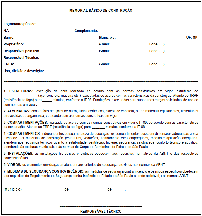5.2.2.15 Memorial de segurança contra incêndio das estruturas