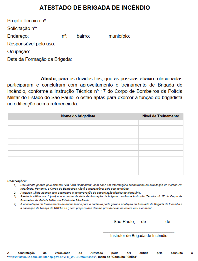 Atestado de Brigada de Incêndio