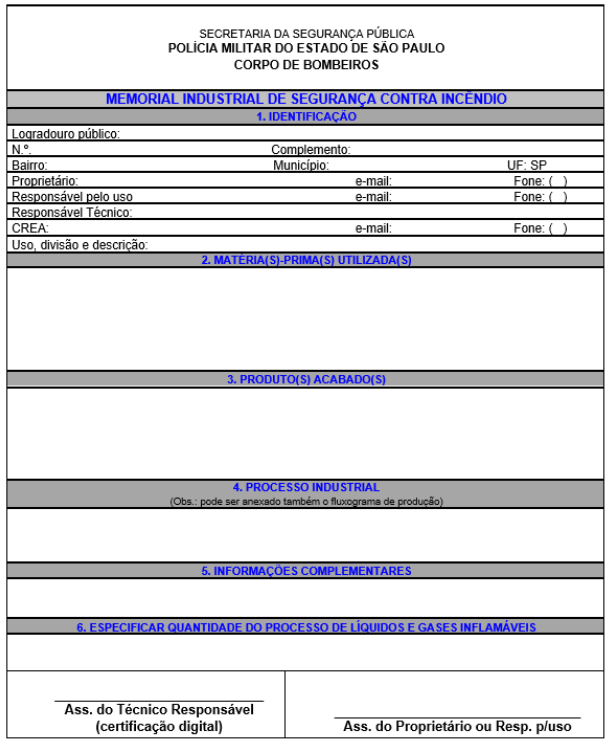5.2.2.6 Memorial industrial de segurança contra incêndio