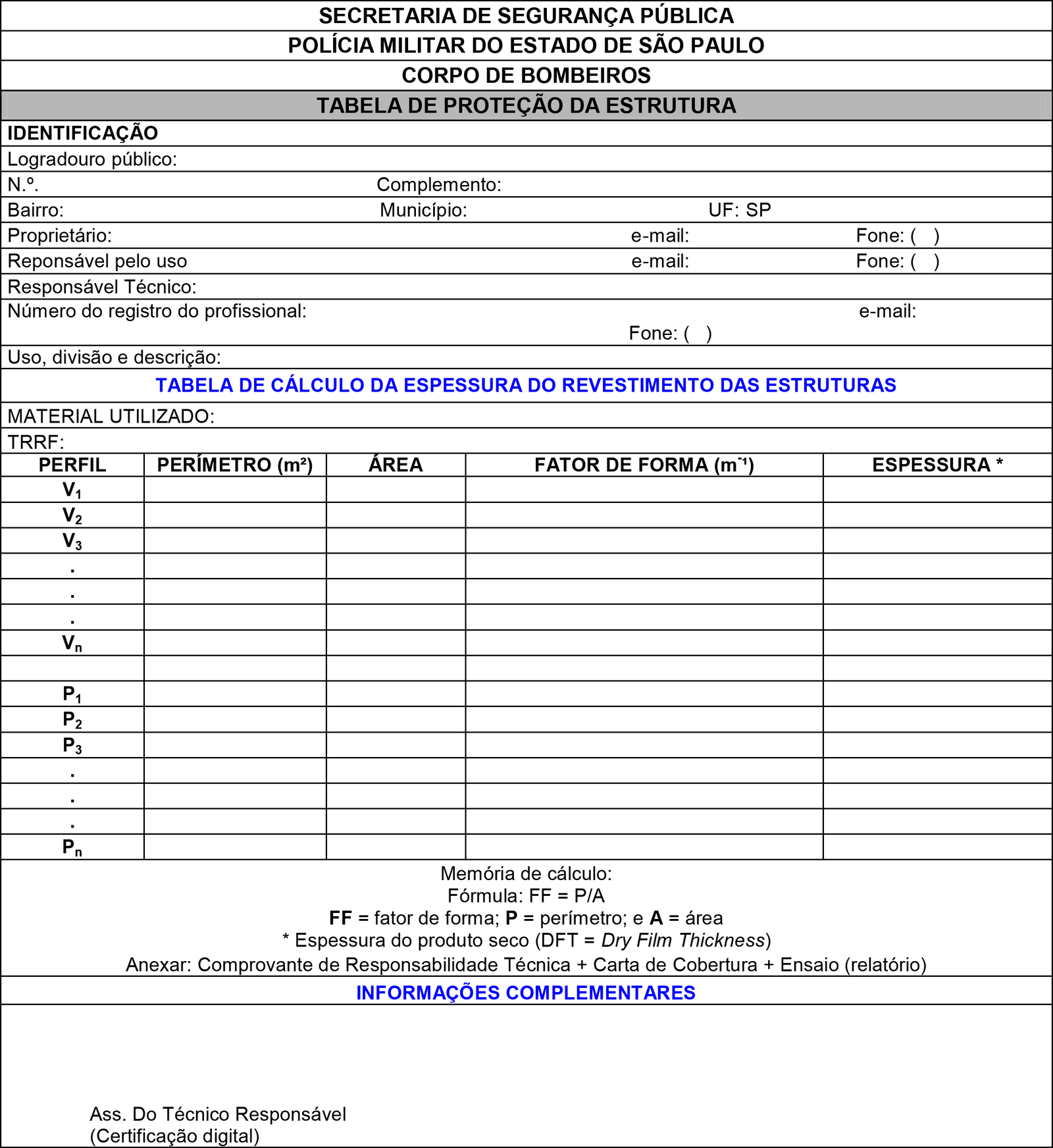 5.2.3 Quando o serviço de segurança contra incêndio exigir a comprovação da metodologia utilizada para atender o TRRF, deverá ser apresentado o memorial de segurança contra incêndio das estruturas e documento comprobatório de responsabilidade técnica.