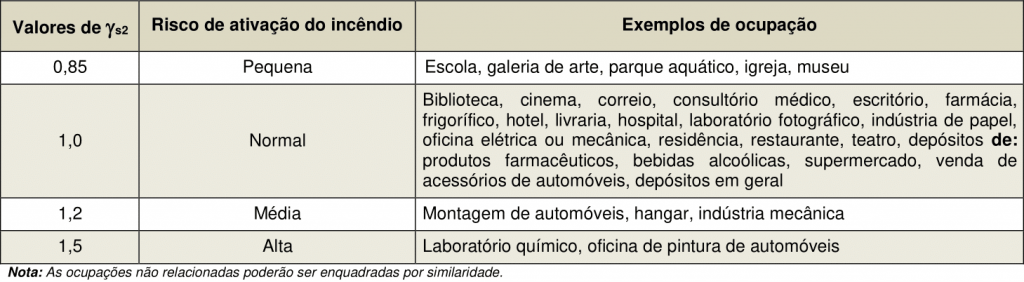 γs – É o produto γs1 x γs2 que são fatores adimensionais que dependem do risco de incêndio e determinados, respectivamente, pela equação D2 e Tabela D2.