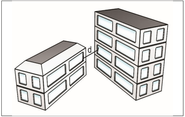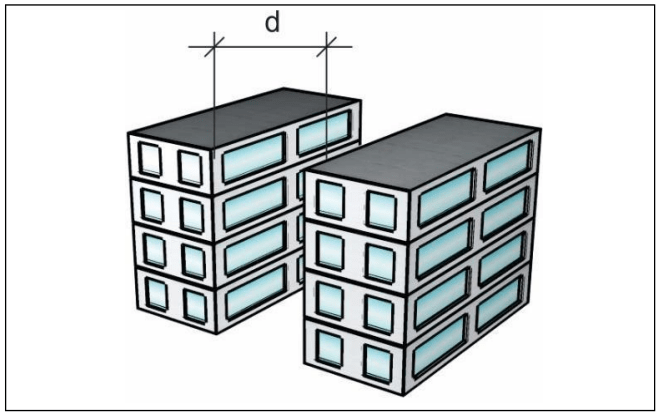 4.2.9 As aberturas situadas em fachadas paralelas pertencentes a áreas de compartimentação horizontal distintas dos edifícios devem estar distanciadas de forma a evitar a propagação do incêndio por radiação térmica, atendendo ao constante na Tabela 1 (Figuras 4 e 5).