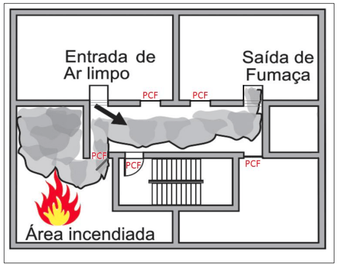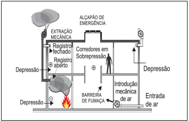 11.1.6.4. Nesse caso deve ser estabelecida uma diferença de pressão da ordem de 20Pa entre as circulações horizontais e os locais sinistrados.