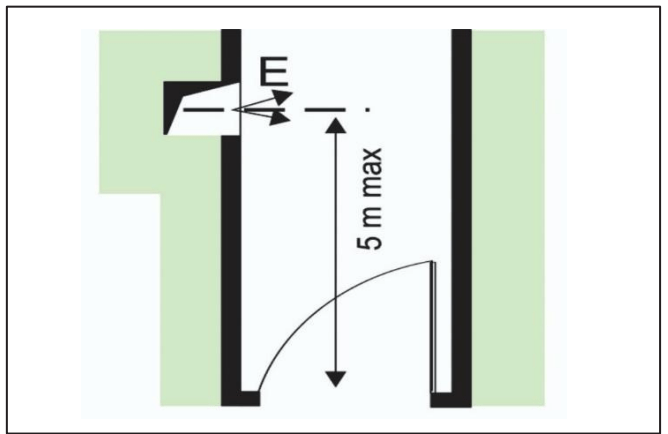 11.1.4.4 Toda porta de acesso ao local deve distar no máximo 5 m das aberturas de introdução de ar (Figura 23).