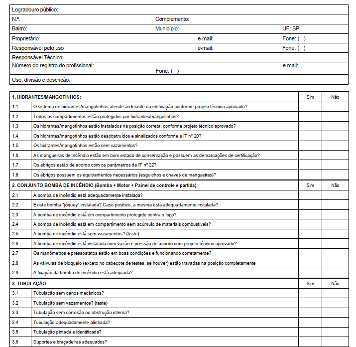 4.2.2 O Corpo de Bombeiros Militar pode solicitar documentos relativos ao sistema, se houver necessidade.