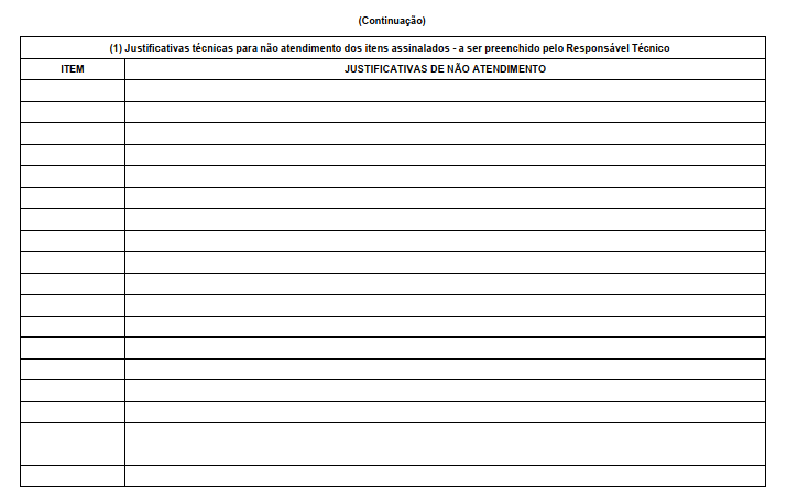 Atesto, nesta data, que a instalação foi inspecionada e está em conformidade com as prescrições da IT nº 22, estando o proprietário e/ou o responsável pelo uso ciente(s) das responsabilidades referentes à manutenção e vistorias periódicas, conforme a NBR 13714.