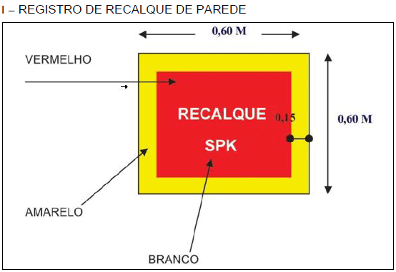 5.13 O registro de recalque para chuveiros automáticos deve conter sinalização e indicação claras, de forma a ser diferenciado do recalque do sistema de hidrantes, de acordo com o Anexo D desta IT.