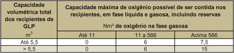 5.2.8.14 O armazenamento de recipientes transportáveis de GLP em pilhas deve obedecer aos limites da Tabela 4.