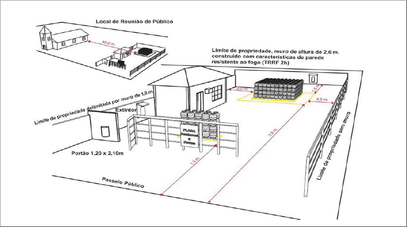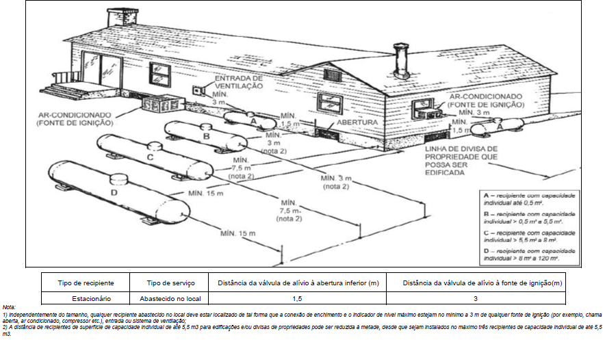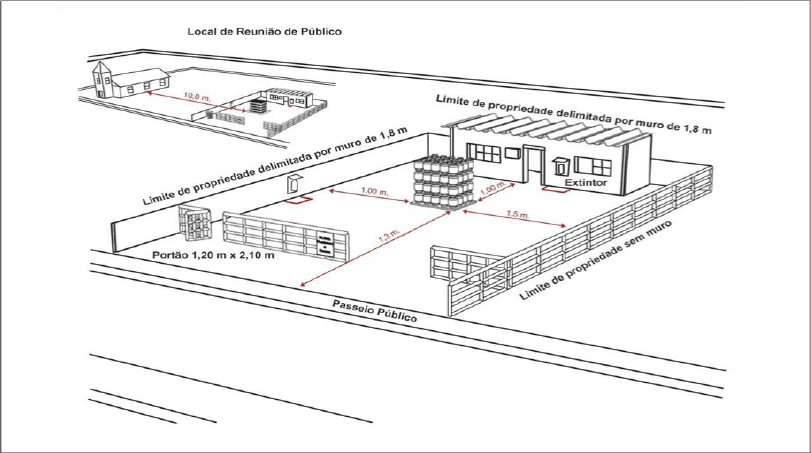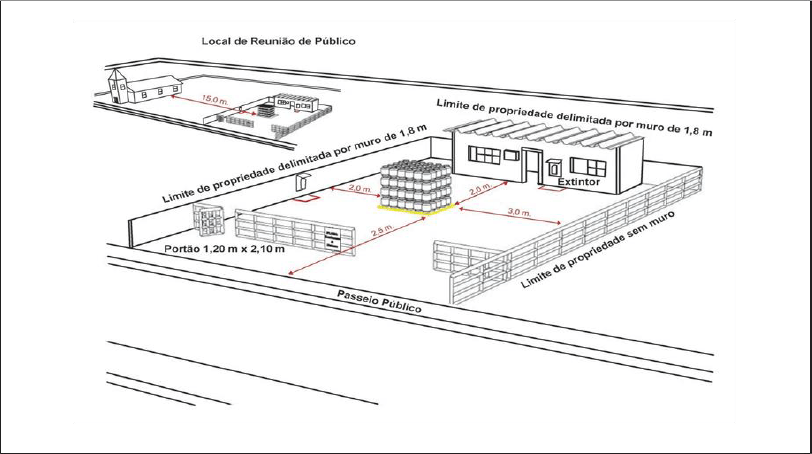 5.2.8.21 A instalação de mais de uma área de armazenamento de recipientes transportáveis de GLP em um único imóvel é permitida desde que atenda aos seguintes requisitos: