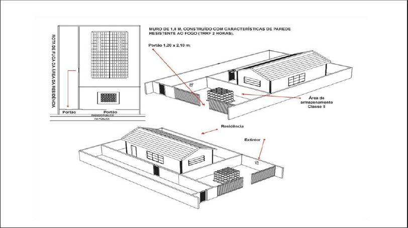 5.2.8.20 Será permitida a instalação de área de armazenamento de recipientes transportáveis de GLP em imóvel também utilizado como residência, desde que haja separação física em alvenaria e acessos independentes com rotas de fuga distintas.