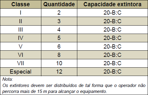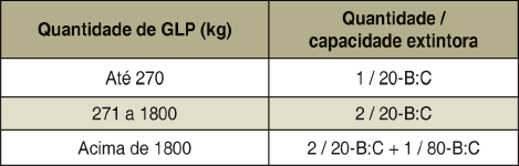 5.2.4 A instalação para armazenamento de recipientes transportáveis de GLP deve ter proteção específica por extintores de acordo com a Tabela 3.