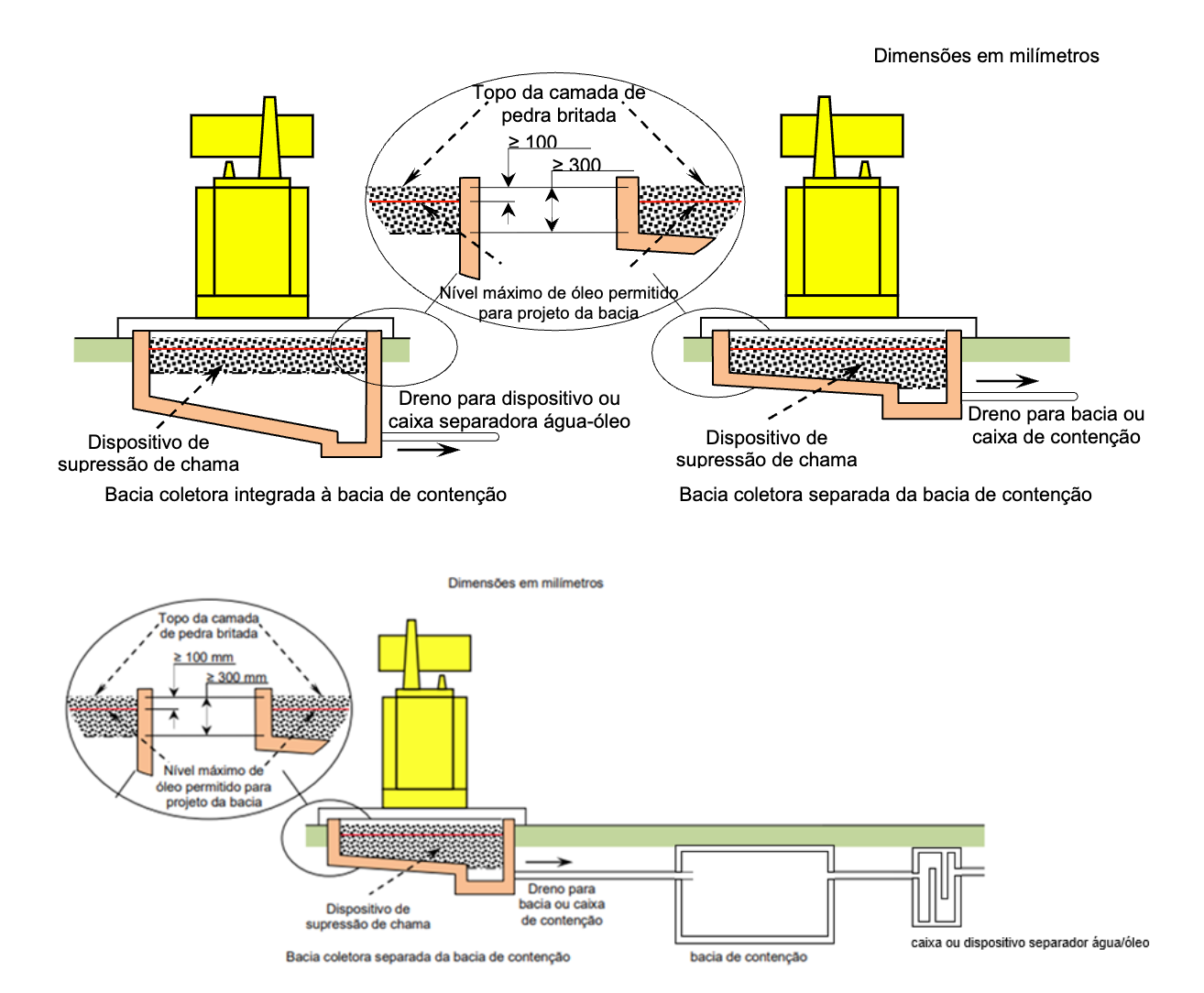 a. para óleo mineral isolante, a bacia coletora e a bacia de contenção devem ser separadas.